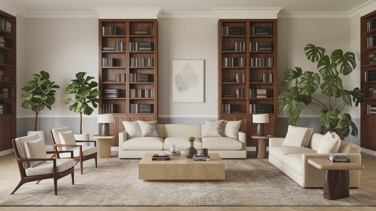 When everything sits low, the room feels off-balance. Adding tall bookshelves or a few leafy plants can completely transform the look. They help draw the eyes up and make the walls feel like part of the space.