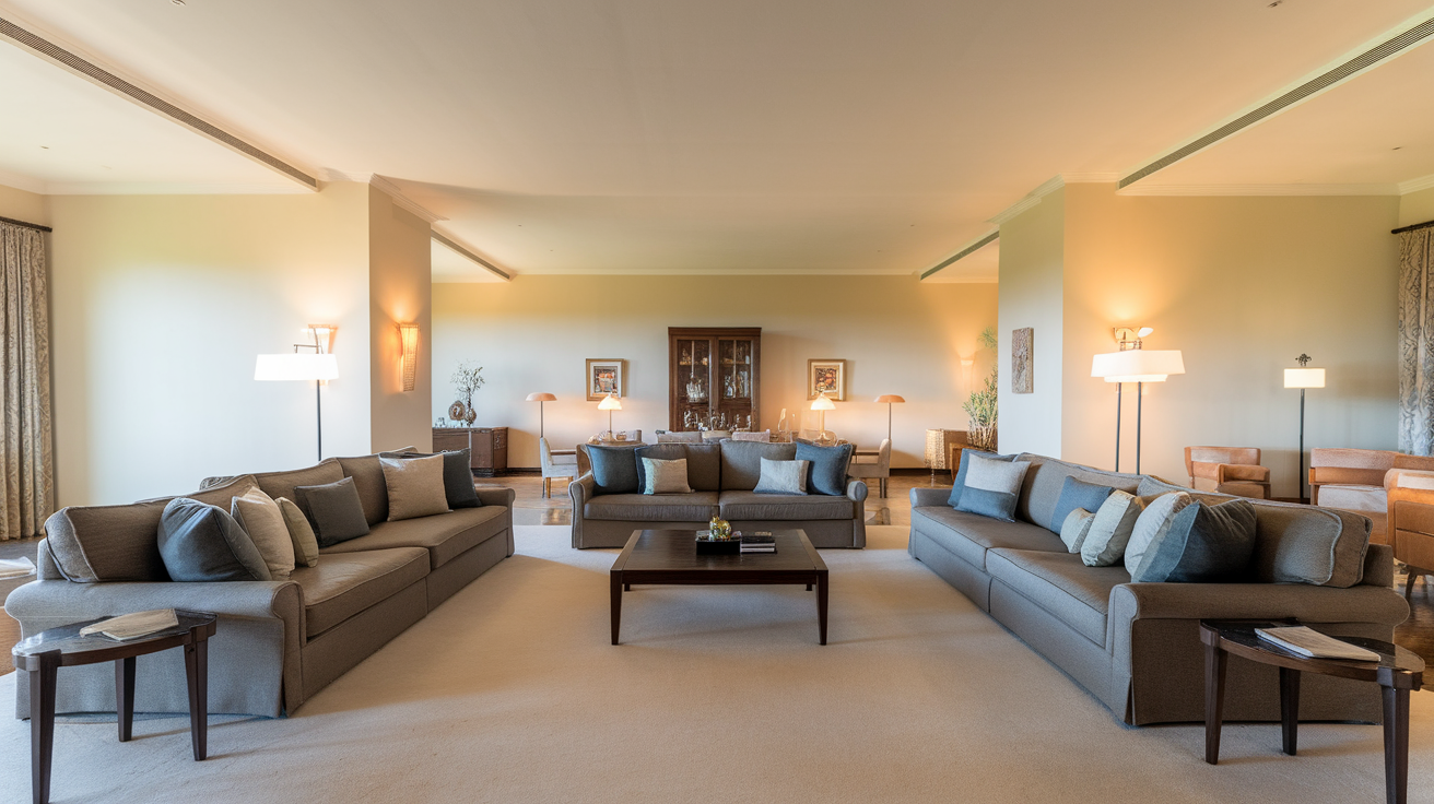 In bigger rooms, smaller chairs or couches don’t fill the space right. Sectionals or two full sofas work better; they provide everyone with a seat and create a solid layout without appearing scattered.