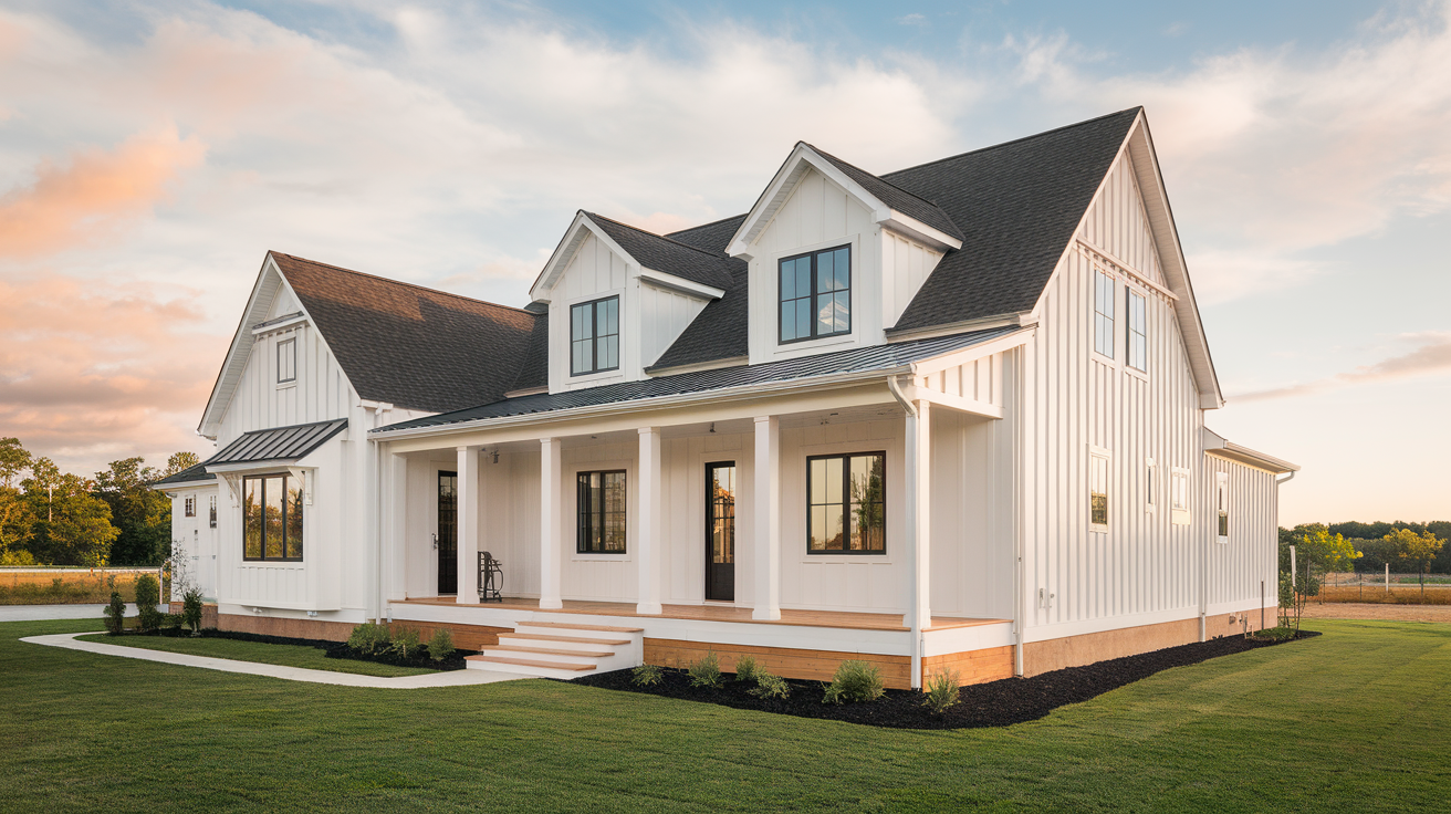 It forms a clean contrast with white trim, allowing windows and doors to stand out. This combination gives homes a polished appearance that works in both suburban and rural settings.