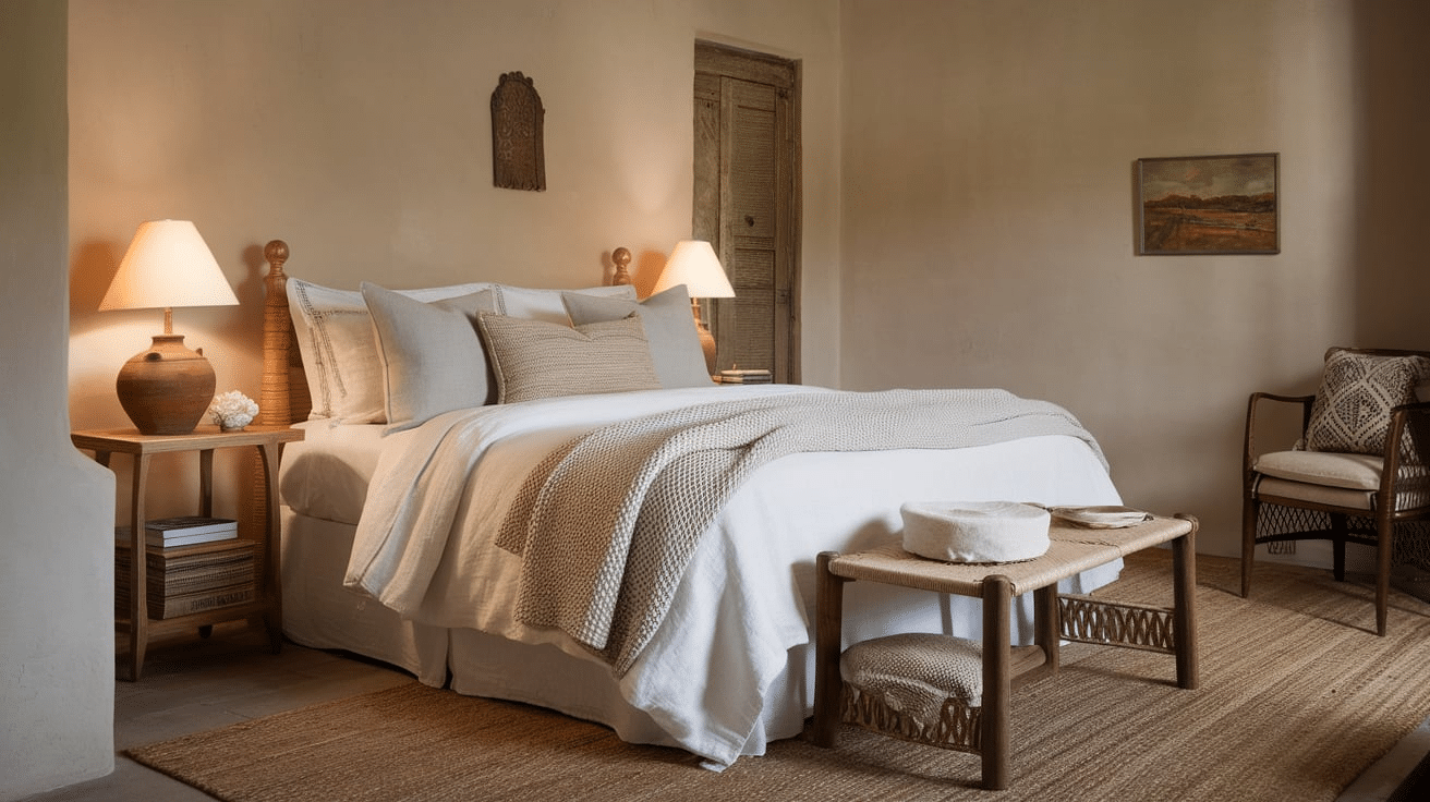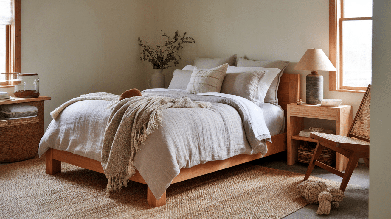 - Soft textiles: Cotton, linen, and wool in rugs, pillows, and curtains.