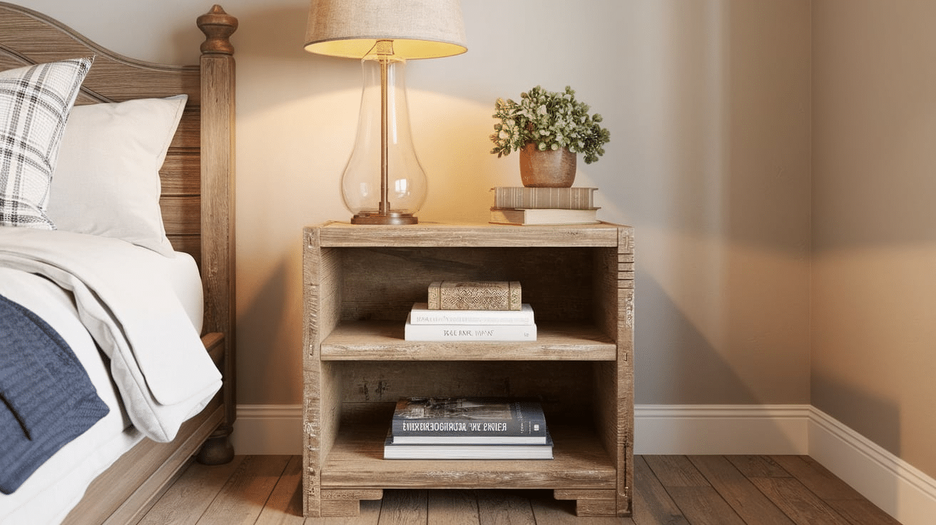 - A wooden bed frame: Natural wood or white-painted beds create a rustic feel.