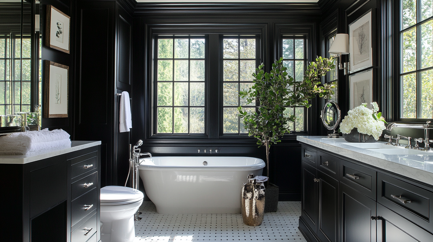 Black cabinets make a strong statement in bathrooms. They look sleek and modern when paired with white walls or floors. Black doesn’t show dirt as easily as lighter colors.