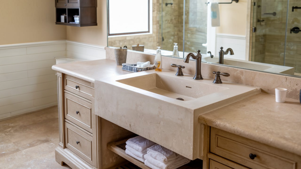 Undermount sinks are installed below the countertop, creating a seamless look. They’re ideal for stone or marble countertops, providing a clean, modern appearance.