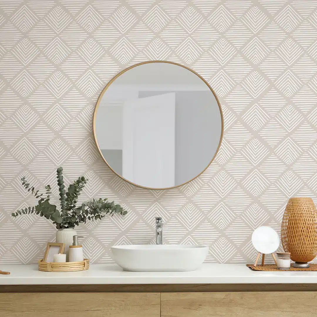 For those who prefer a more modern and structured look, geometric patterns remain a favorite choice in bathroom wallpaper trends for 2024.