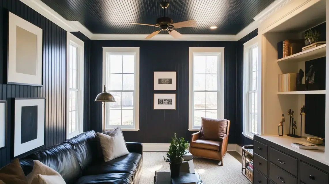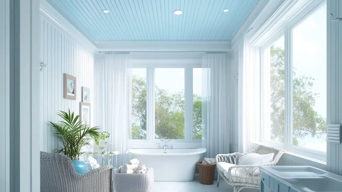 A light blue or soft gray beadboard ceiling brings that calm, beachy feel into your space. It works well in bathrooms, porches, or sunrooms.