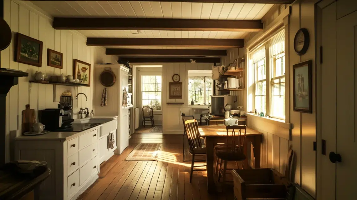 This style makes a space feel warm and welcoming. It’s perfect for kitchens, bedrooms, or even hallways where you want a little bit of that country-home touch without going over the top.