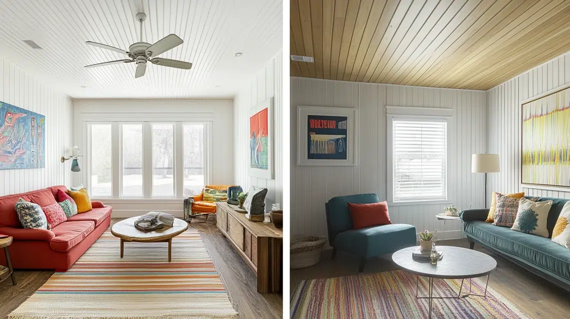 One smart and stylish fix is using a beadboard on the ceiling. It’s easy to install, budget-friendly, and looks great in almost any room.