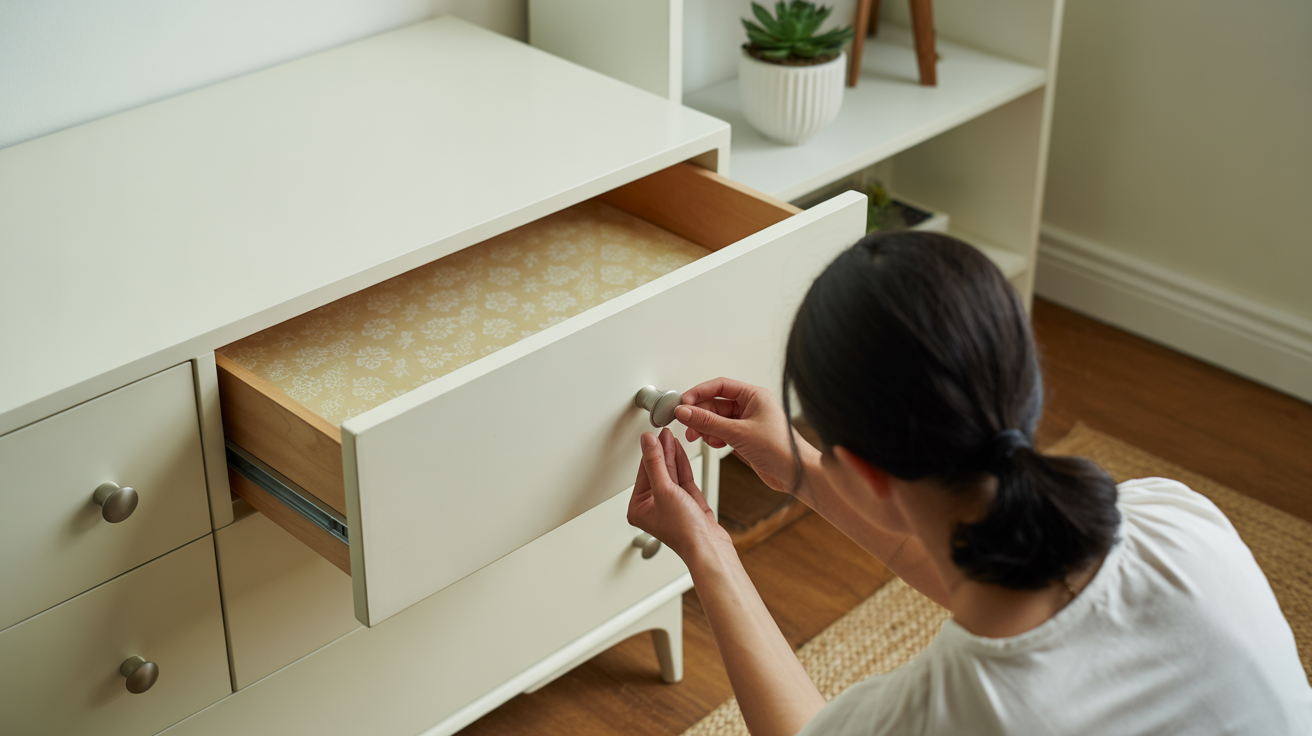 - Wallpaper Drawer Liners: Add peel-and-stick wallpaper inside drawers. It brings a fun detail to the inside space.