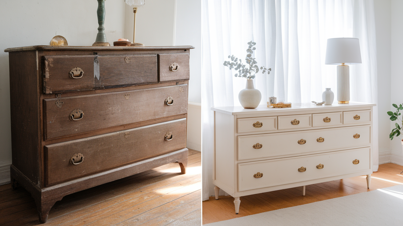 Paint, sandpaper, and a few basic tools are often cheaper than a new table or dresser. Even if you spend a little on hardware, it still costs less than replacing the whole thing.