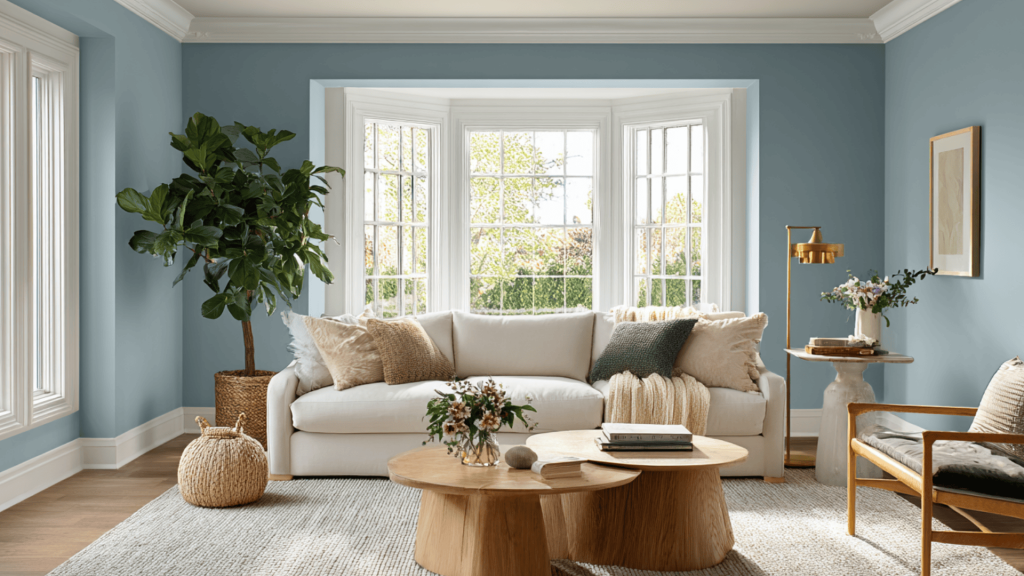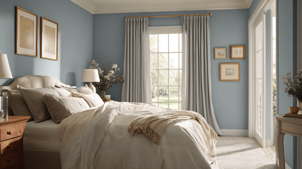 This shade is a favorite for bedrooms. It has a calming, timeless feel—almost like a well-worn denim or a misty sky. Pair it with white trim and neutral bedding for a balanced, peaceful space.
