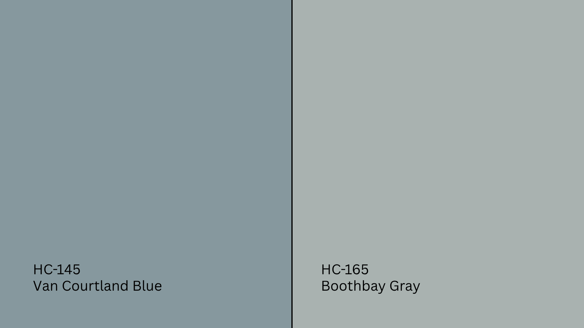 Boothbay Gray (HC-165, #AAB2B0) is a classic blue-gray with a stronger gray presence.