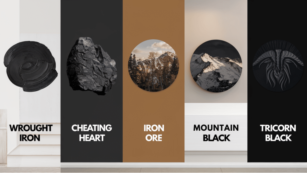Wrought Iron belongs to the off-black family. It sits between true blacks and dark grays, making it more flexible for different home styles.