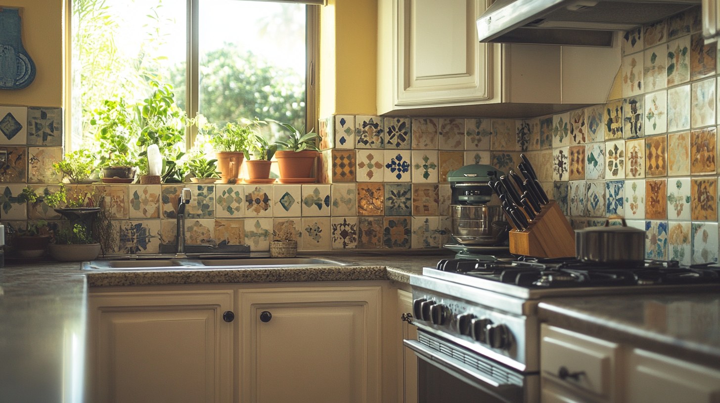 These work best as accent pieces mixed with plain tiles, so they don’t compete with your granite for attention. Each one is slightly different, which adds charm and shows care in your kitchen design.