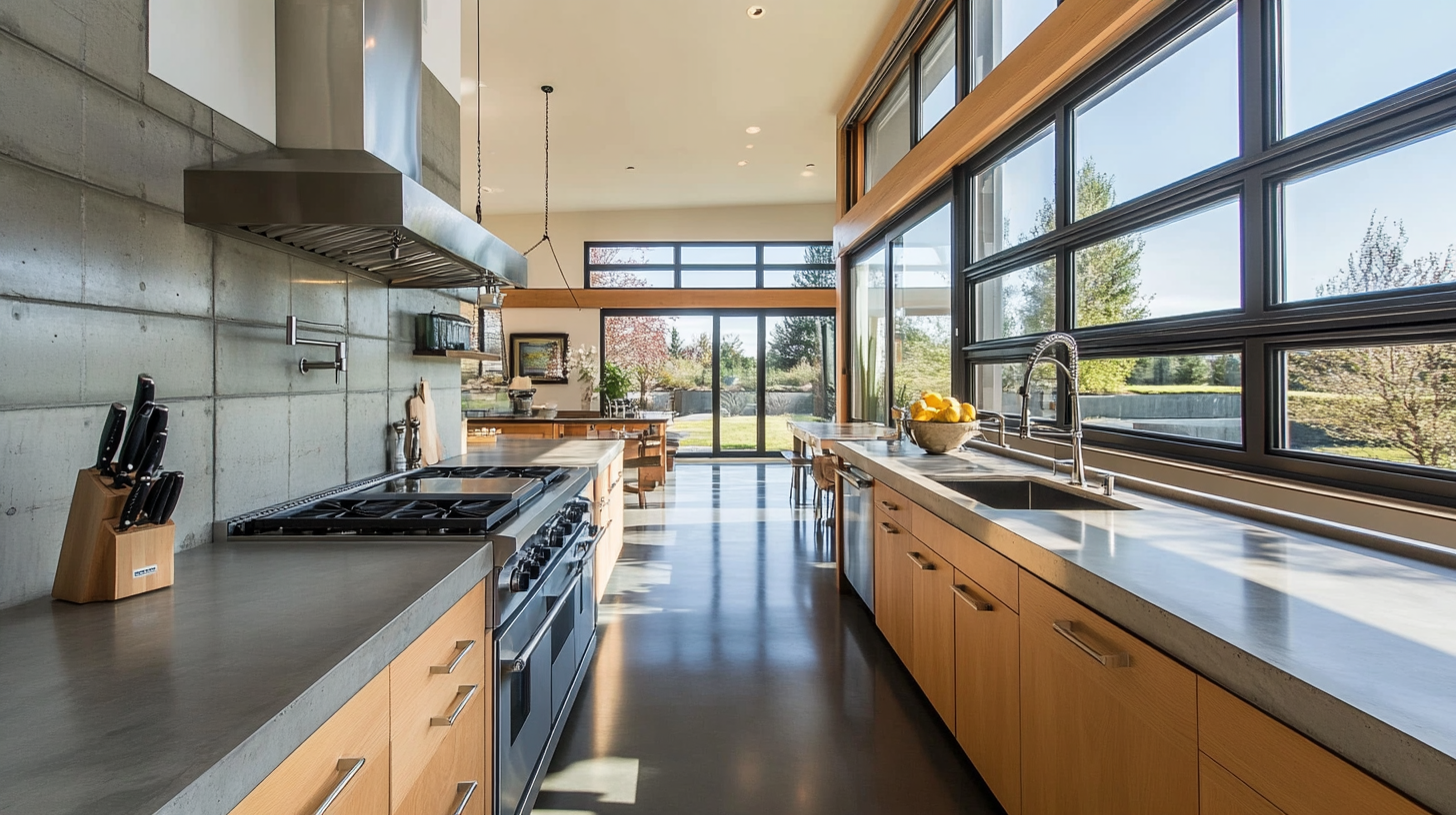 Concrete tiles add a raw, simple look that works well in modern kitchens. Their plain, smooth finish lets your granite stand out. These tiles come in many shades of gray and can be sealed to resist stains.