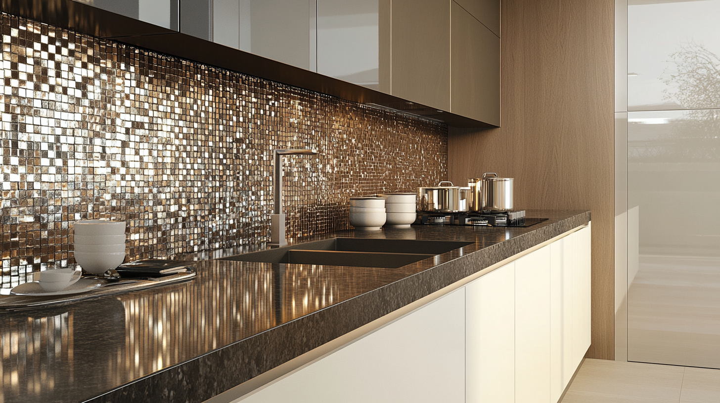 This option lets you be creative while still keeping your kitchen looking good. Just keep the pieces small so the look stays neat. The mix of shiny and matte pieces catches light in complex ways that can make a kitchen more lively.