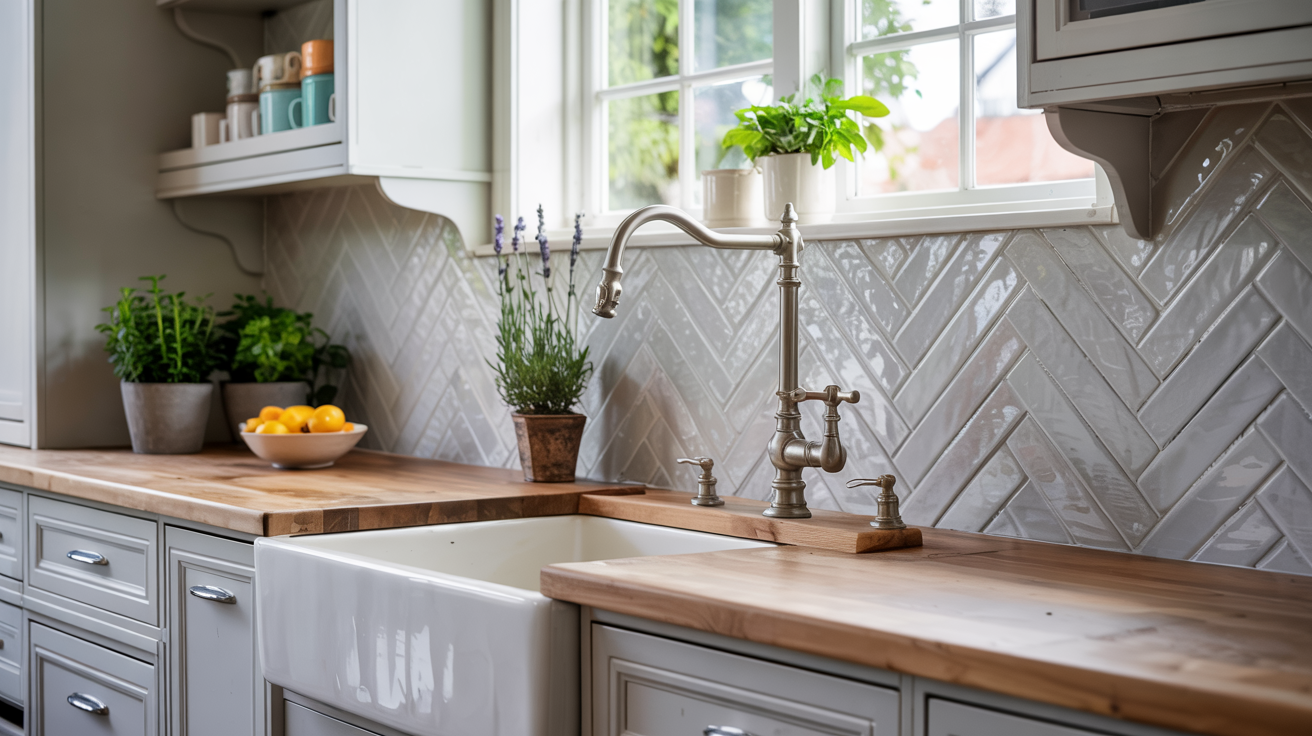 This design keeps things calm but still interesting. It works especially well in spaces that mix modern cabinets with classic materials.