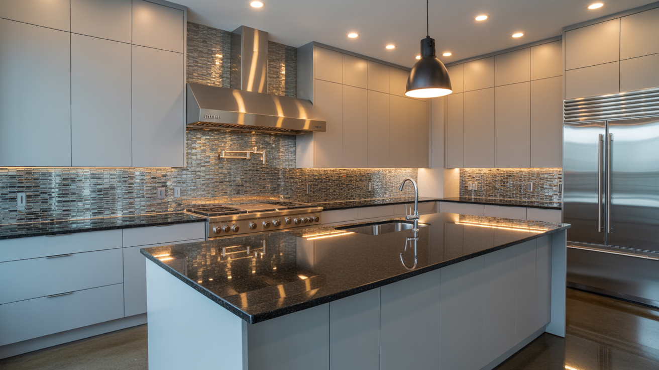 It gives the kitchen a smooth, unified look with subtle depth from the shine.