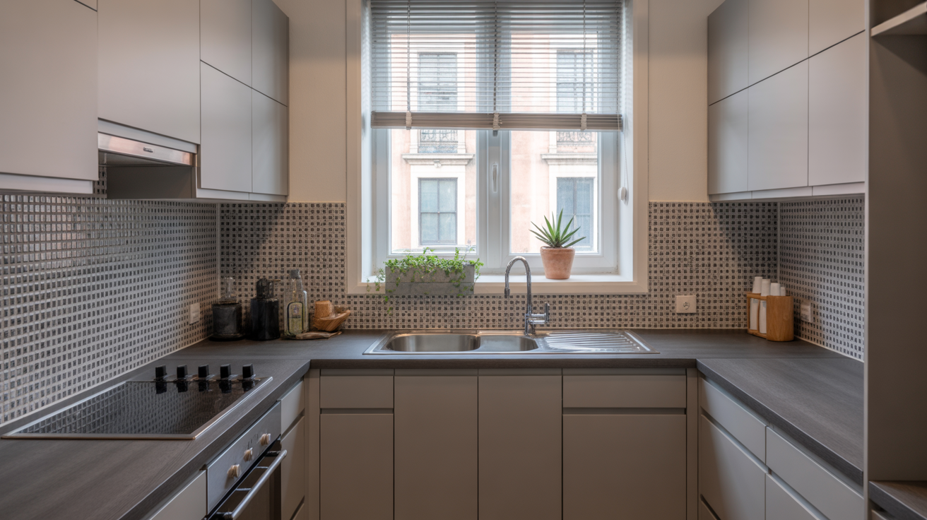 This is a smart pick for a quick update. The dark tile gives a sharp contrast against gray cabinets and works well in rental or budget kitchens.