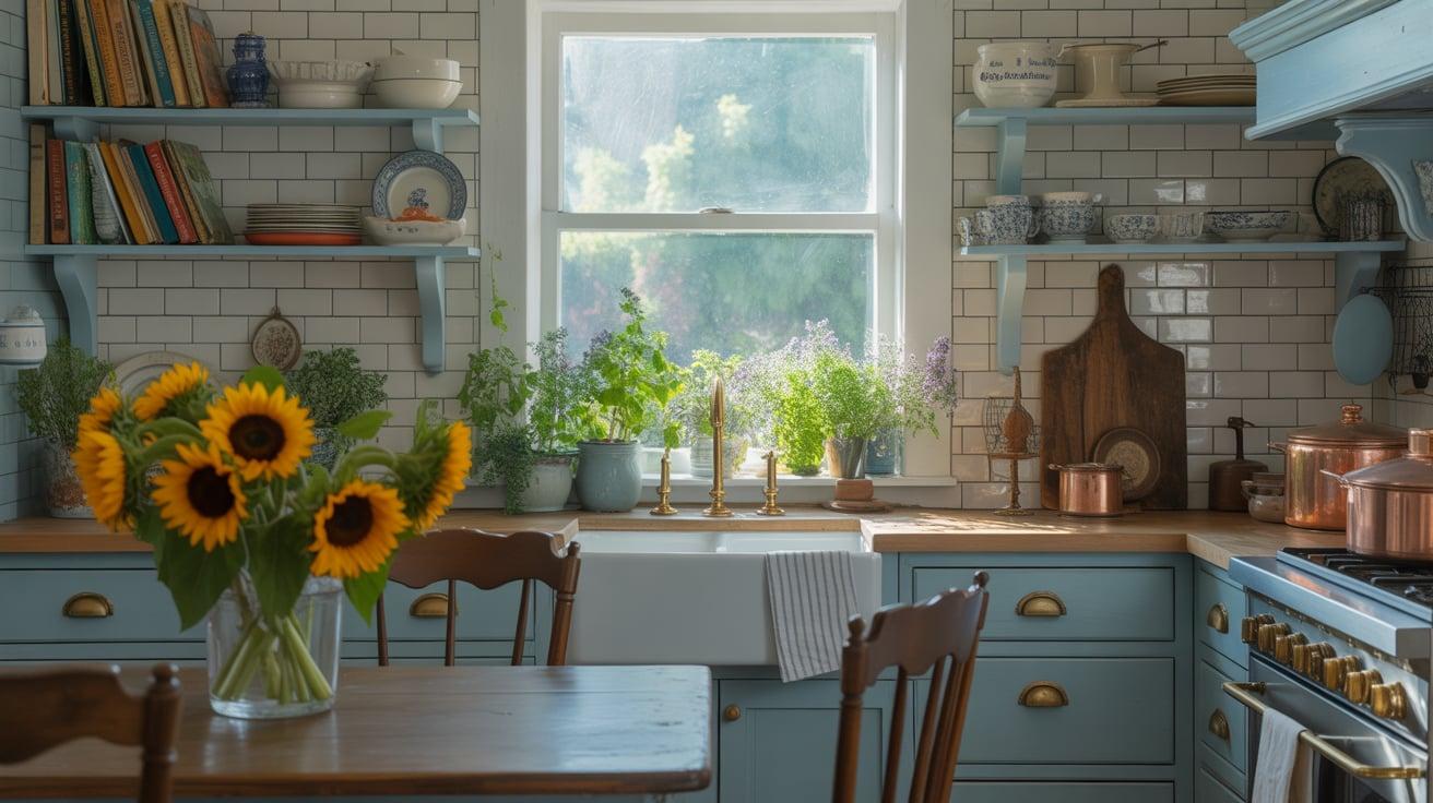 Blue cabinets bring a calm and fresh feel to any kitchen. They work in every season and match well with many colors like white, gray, or wood tones.