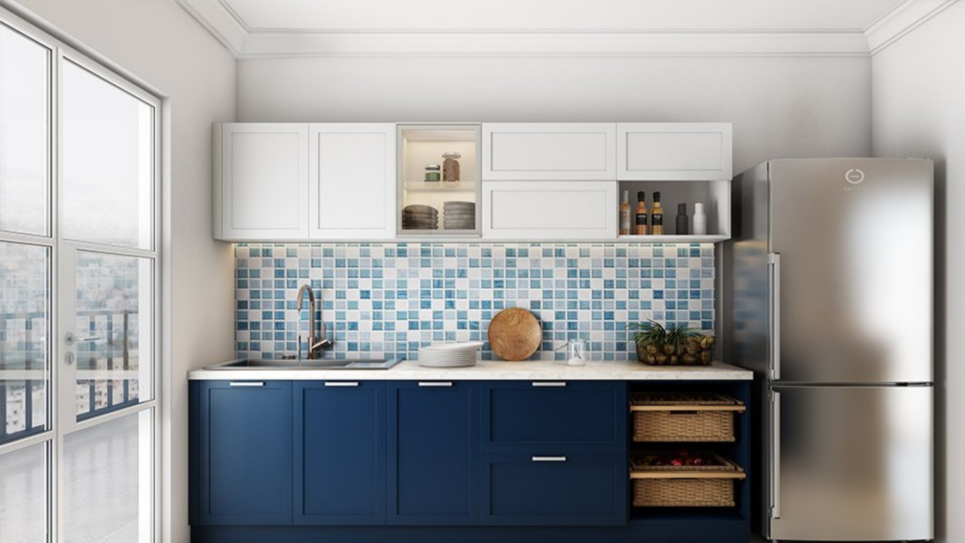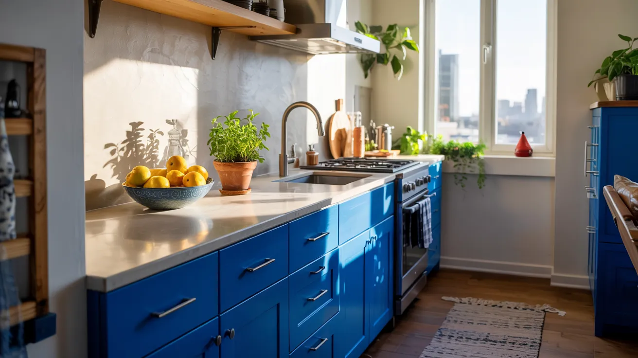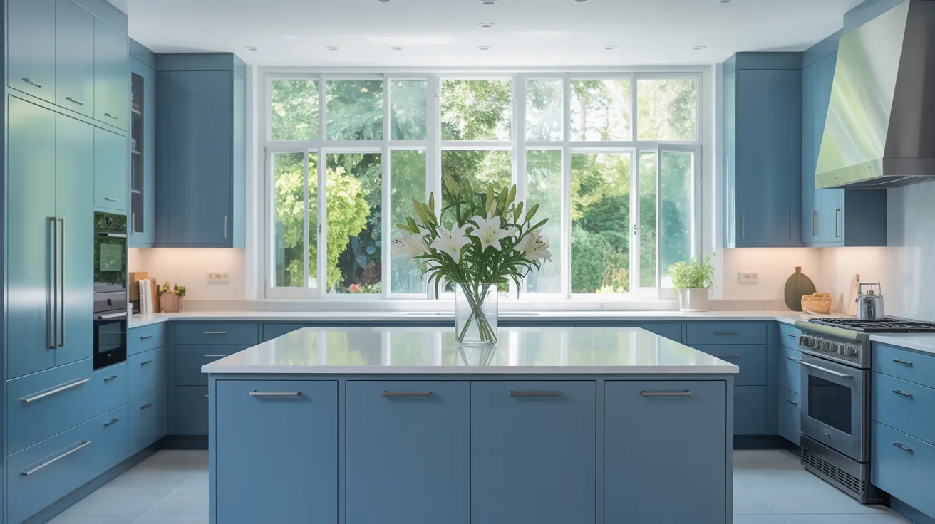 Pair with white tile or concrete for balance. Add brass handles for warmth. Best used in classic or transitional kitchens where a bold blue can serve as the main focus without looking too trendy or loud.