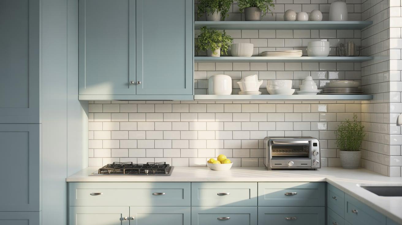 This tone makes the kitchen feel fresh without going overboard. It’s easy to match and easy to live with. Best used in minimalist kitchens that need just a hint of color to break up the clean lines.