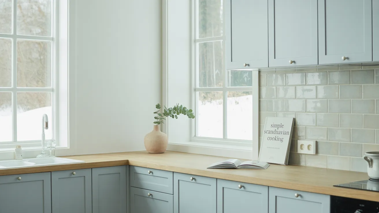 Pair with white or warm wood counters. Works well in bright or softly lit rooms. Best used in Scandinavian-style kitchens where simplicity and gentle colors help create a calming, open space.