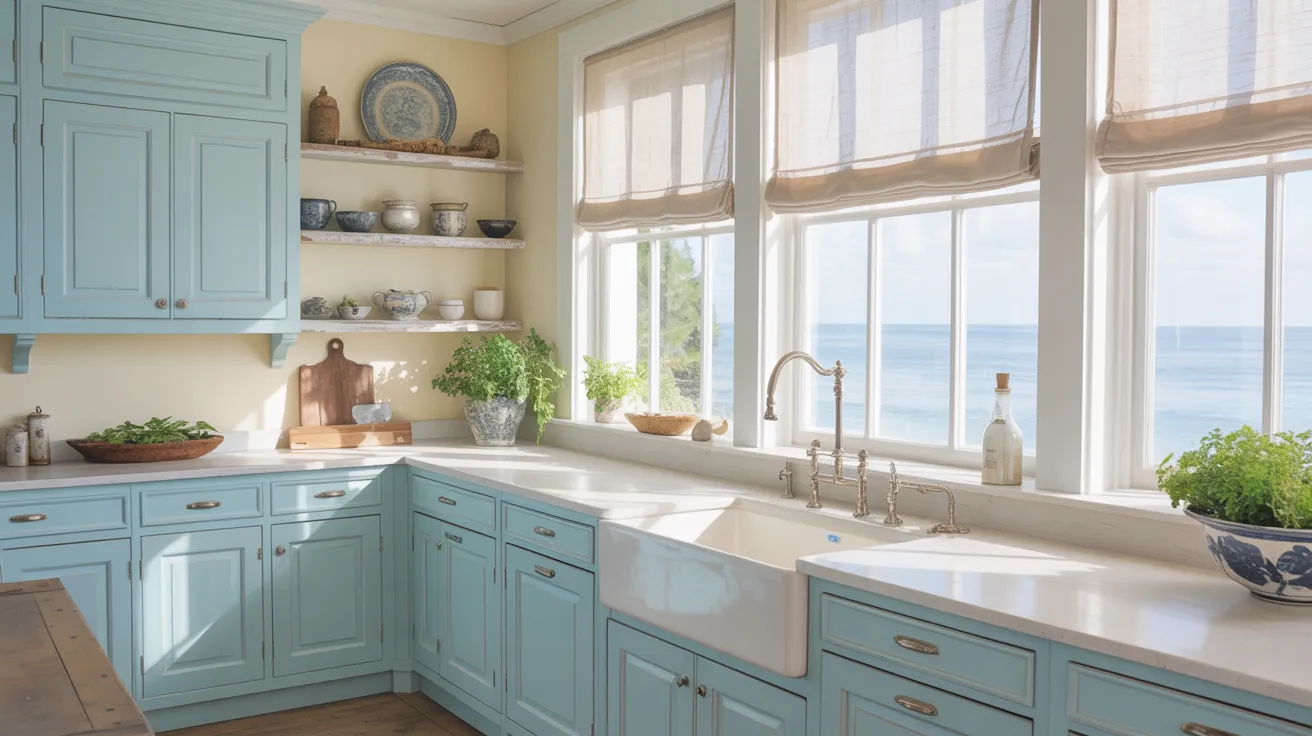 It brings energy while keeping things cozy and refined. Best used in coastal kitchens, especially those with lots of light, white tile, or sandy wood floors that balance bold cabinets with breezy touches.