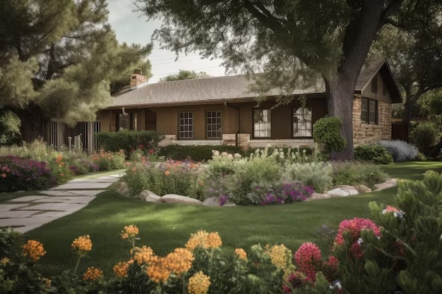 Embrace elements like stone pathways, colorful borders, a cozy patio, and a garden full of flower beds to boost the curb appeal.
