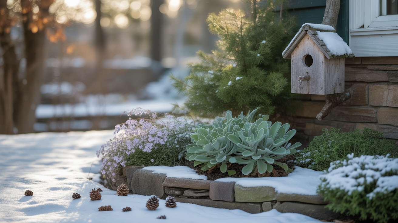 | Lamb’s Ear | Holds color and shape through cold months | 4–9 | Full sun | Well-drained soil, trim as needed | Fuzzy, silver foliage adds soft texture |