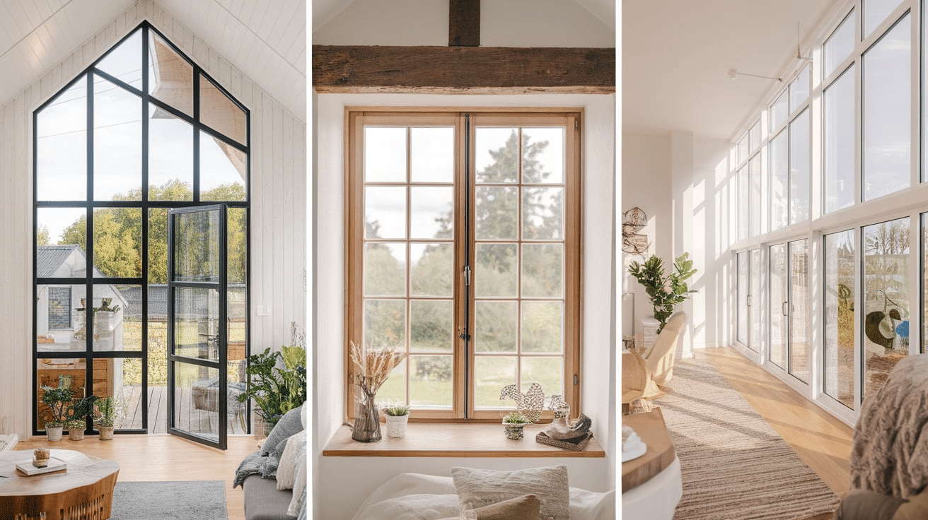 Large windows are a big part of Scandinavian farmhouse design. They bring in natural light and make the home feel open. Popular options include: