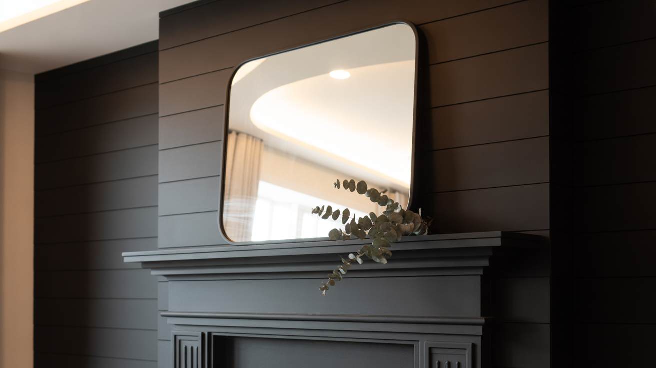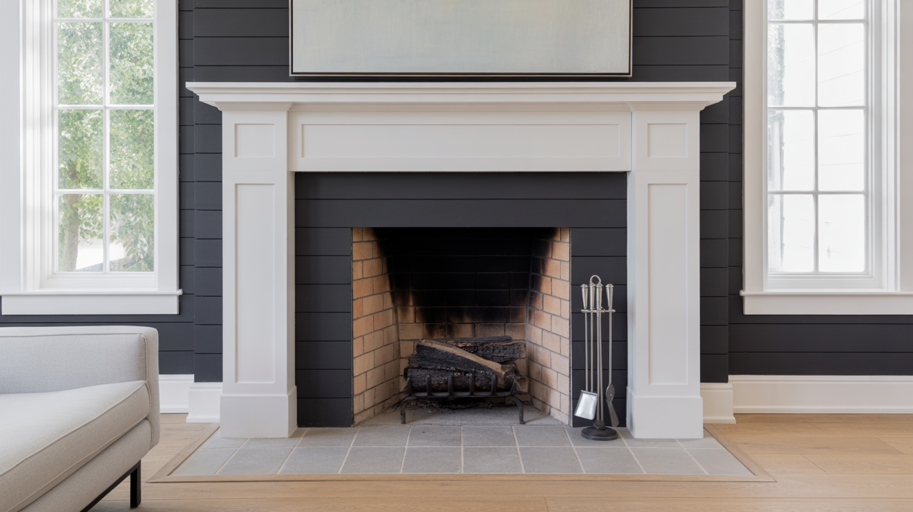 Creating a defined “picture frame” around the fireplace adds importance without darkness dominating. This targeted application balances bold impact with lightness, perfect for maintaining bright, airy room aesthetics.