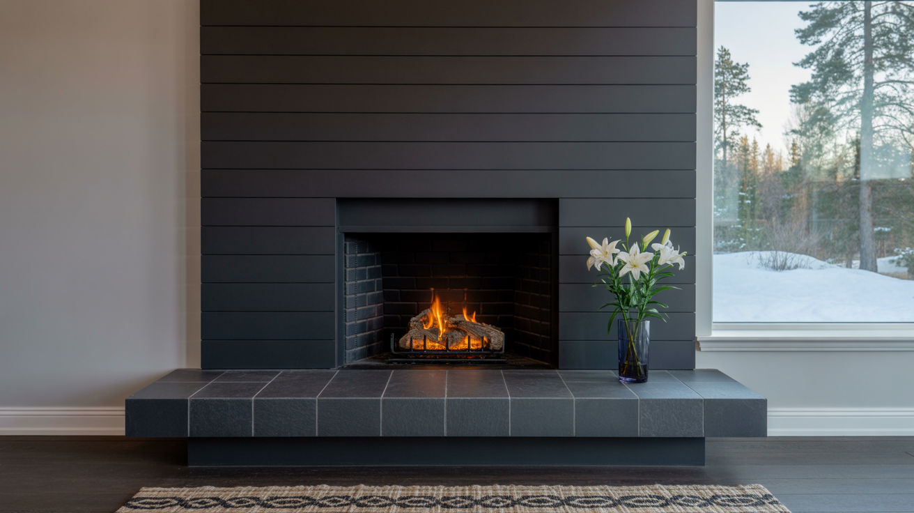 True black is bold and eye-catching. It is great for making your fireplace the main feature. Charcoal is a softer choice. It works better in small or low-light rooms where full black might feel too strong.