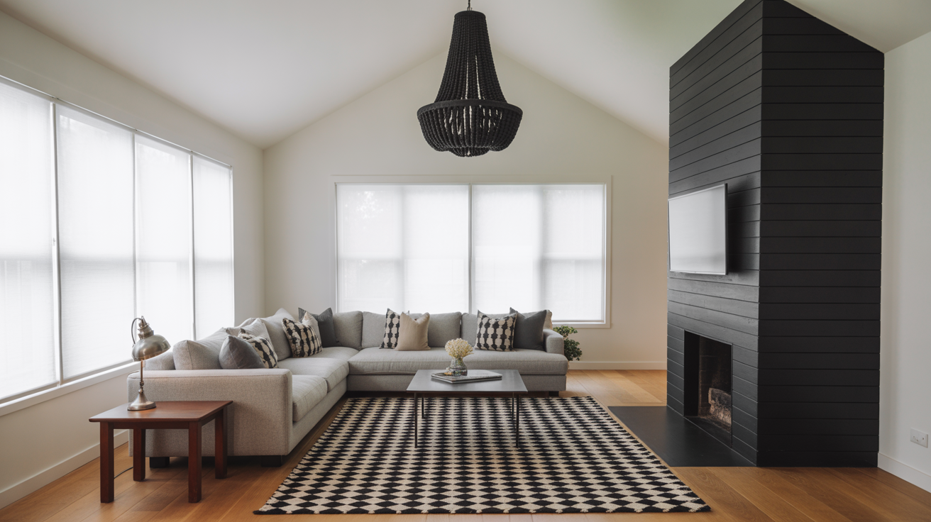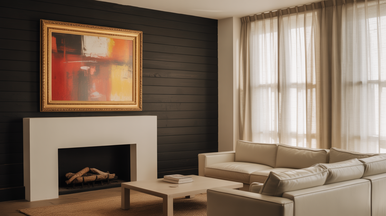 A black fireplace wall creates a dramatic visual impact that instantly draws attention to this spot. The deep, rich tone adds warmth while making the entire room feel more intimate and deliberately designed.
