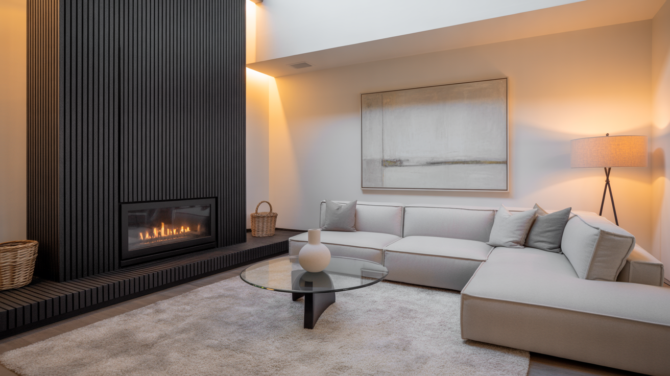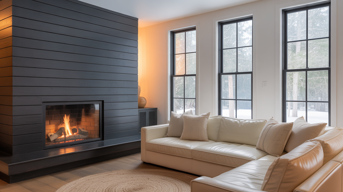 Modern fireboxes appear architectural and intentional when surrounded by black framing. This approach creates a seamless transition between the firebox and the surrounding wall, producing a cohesive, built-in aesthetic.