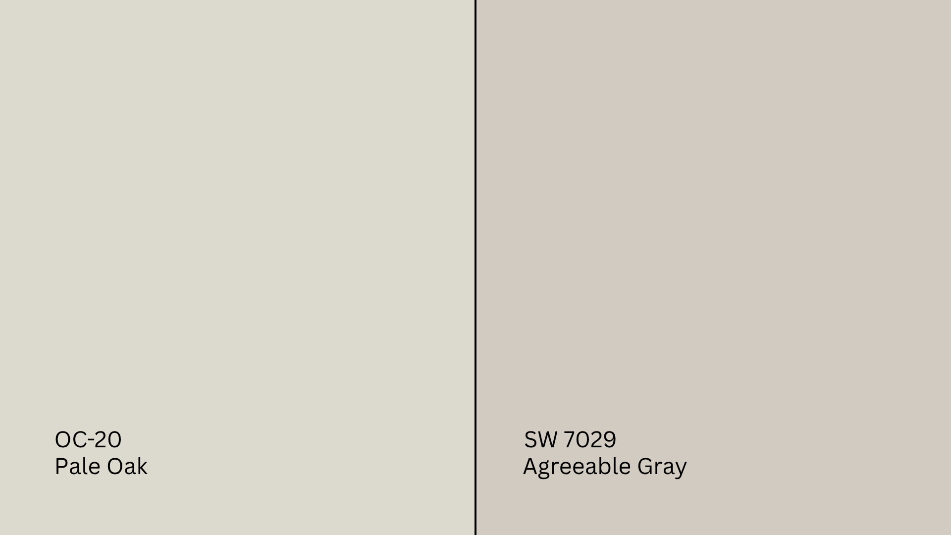 Agreeable Gray (SW 7029, #D1CBC1) is very flexible with any decor. Might feel flat in low light compared to Pale Oak’s warmth.
