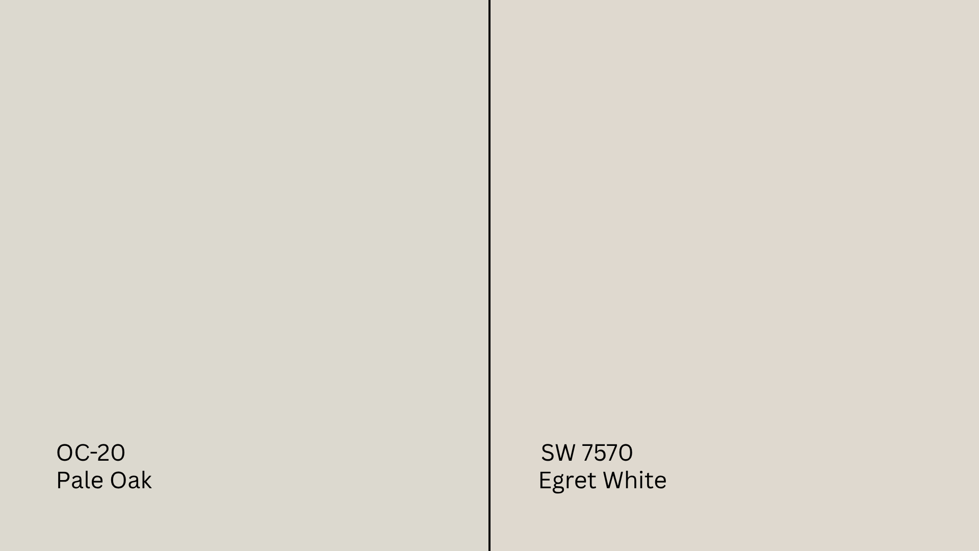 - South-facing rooms: Pale Oak warms up and feels more beige; Egret White glows softly