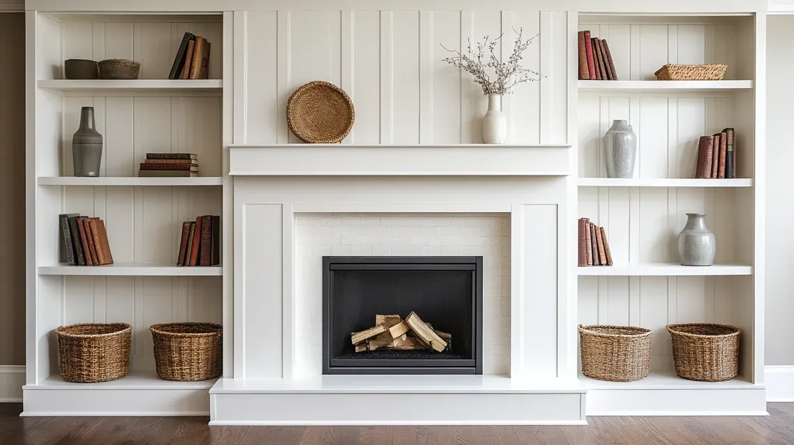 You can also frame the fireplace with built-in trim that matches the battens. This idea is perfect for homes with a formal living room or an older style. It adds charm and a polished look.