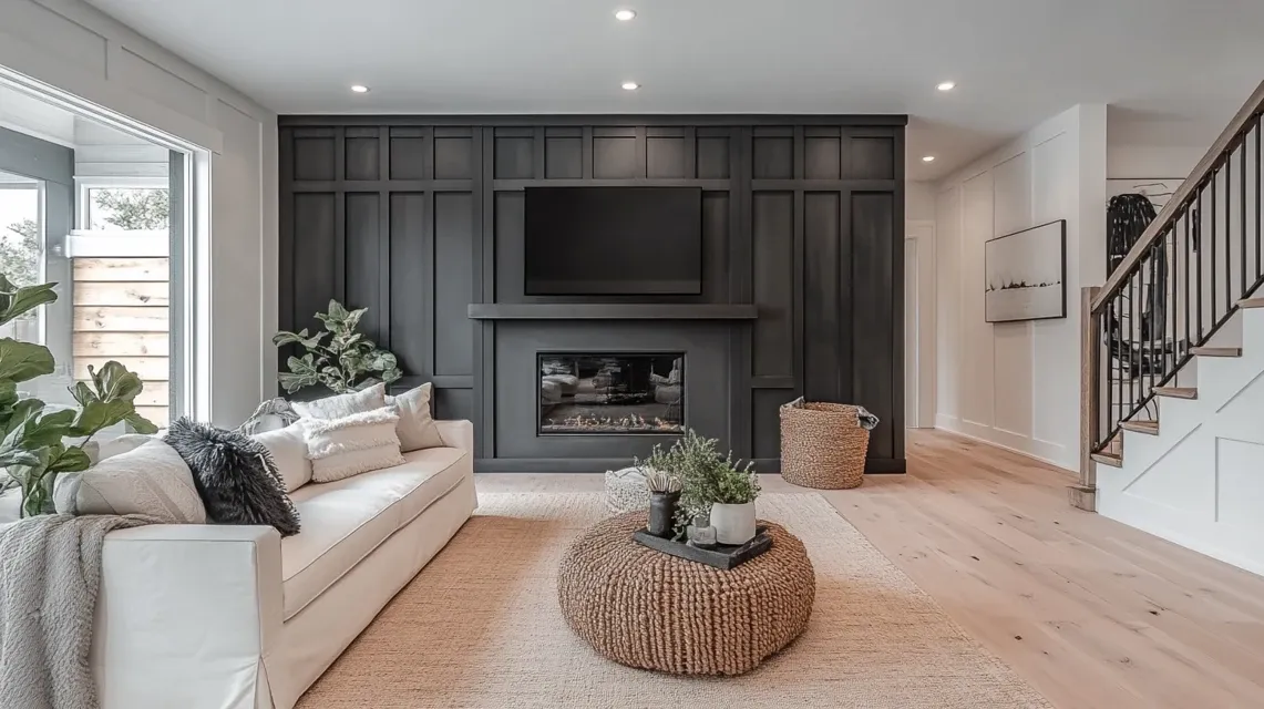 Want your fireplace to stand out? Go bold with black. A black board and batten wall gives off a strong, modern look. It works well in city homes or places with metal and glass. It brings contrast and makes everything else feel sharper.