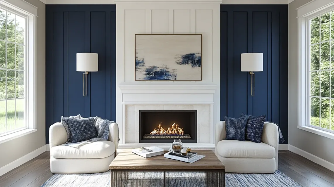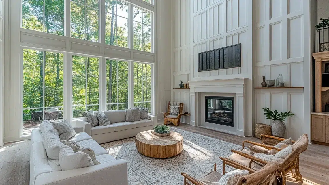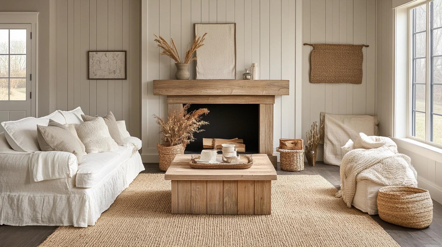 This look is soft, clean, and homey. Use neutral colors like off-white, pale gray, or soft brown for the board and batten wall. Add a light wood mantel and simple textures—think linen pillows, cotton throws, or jute rugs.