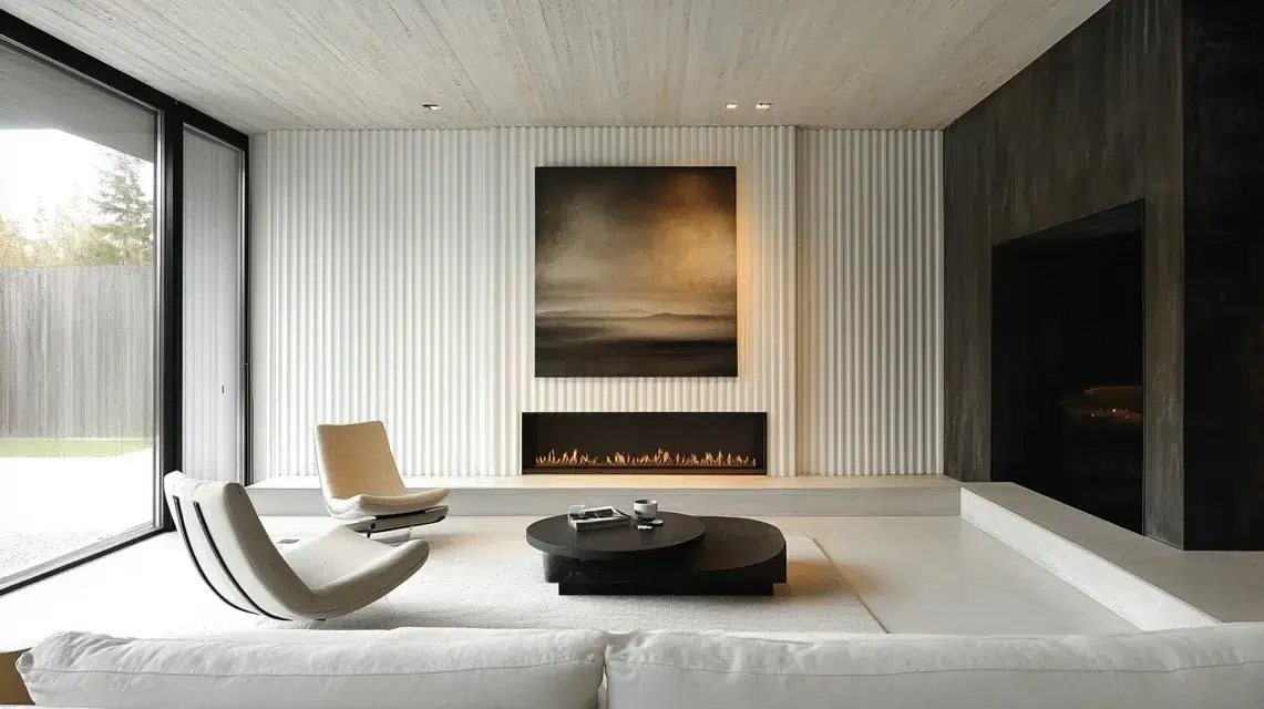 Thin battens spaced evenly give a very clean, smooth look. This style is all about neat lines and keeping things simple. Use colors like pure white, cool gray, or soft black. Avoid heavy decor. Maybe just a flat mantel, one large frame, or a single shelf.