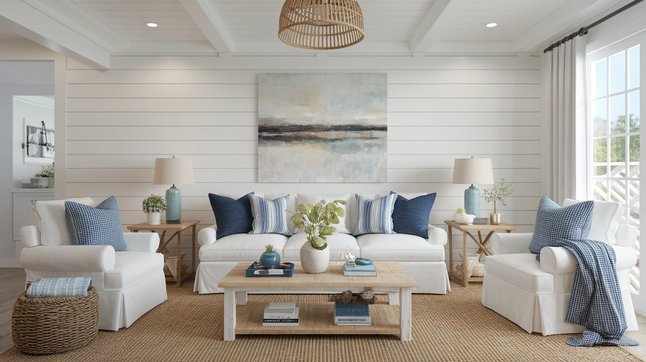 Natural wood side tables work well here. Stick to simple lines and soft textures. Try to keep things cozy without using too many bold items.