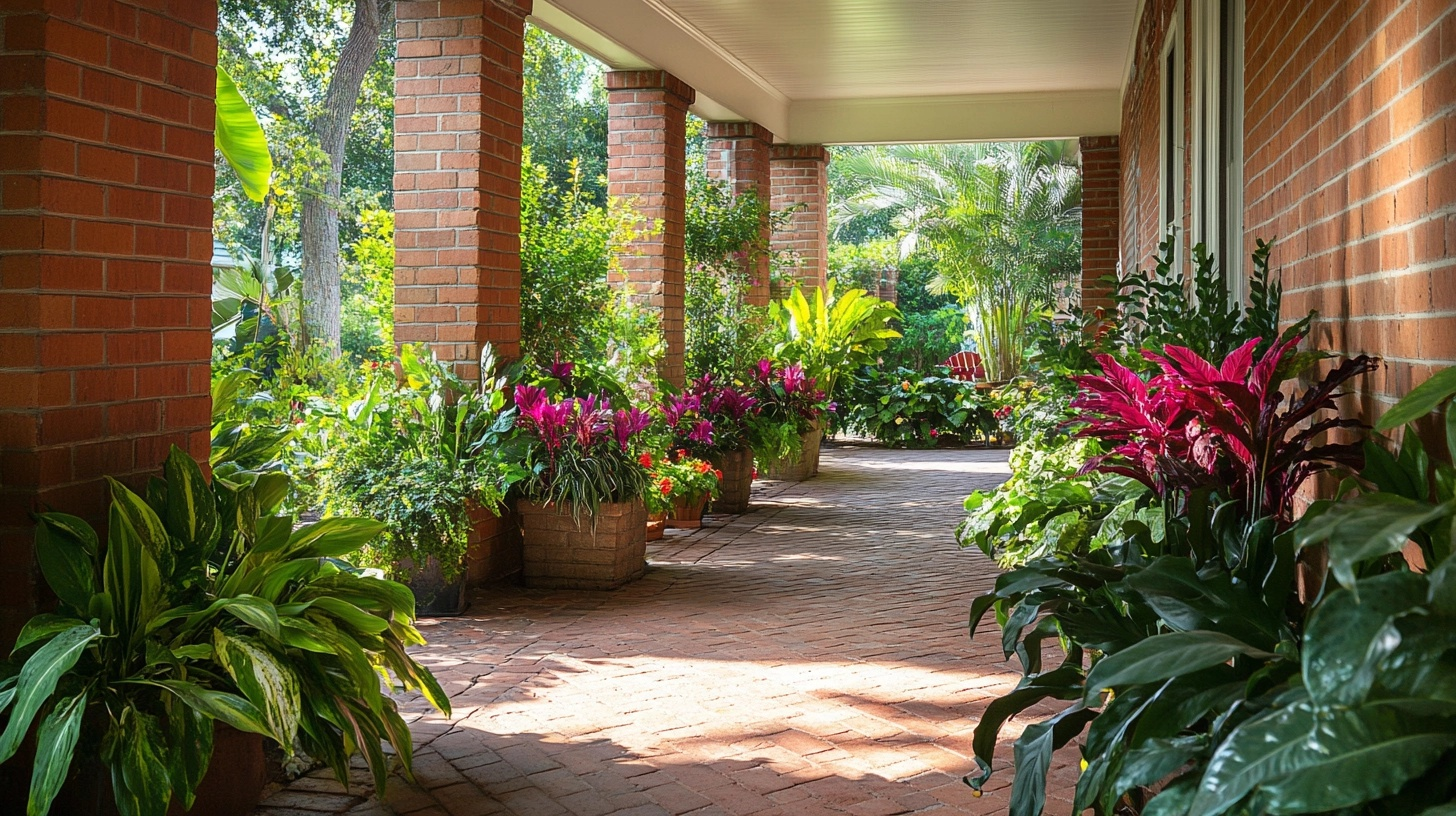 5. Brick Porch with Planters and Greenery