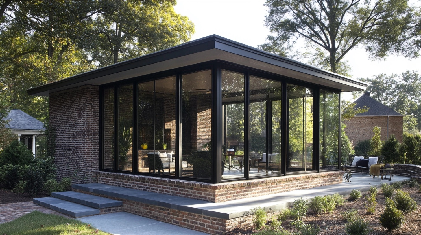 Contemporary brick and glass porch brings together the warmth of traditional brick with modern glass panels or large windows. This combination creates a bright, open space that maintains connection with the outdoors while providing shelter from the elements.