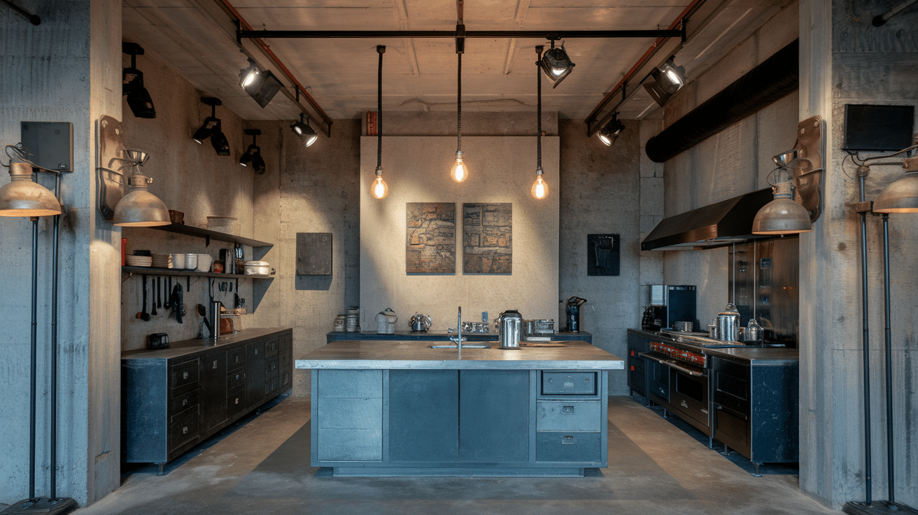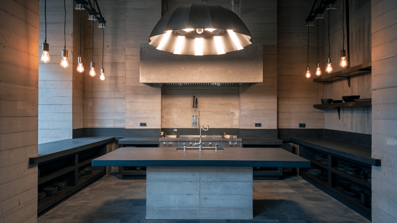 Lighting plays a big role in setting the right mood for a brutalist kitchen. The industrial style works well with bold, practical lighting that highlights the raw, simple materials. Here are some great lighting ideas: