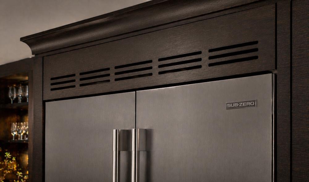- The Problem: The compressor on a Sub-Zero is on top. If you seal that unit inside a tight wooden box with a solid valance (the trim piece above the fridge), the heat pools at the top and fries the electronics.