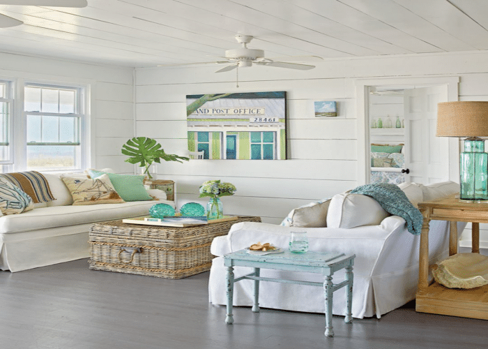 In all, the lake house coastal decor trends embrace the concept of creating open and spacious living areas that seamlessly blend the indoors with the outdoors by incorporating elements such as fresh potted plants, nature-inspired wall art, and outdoor seating arrangements, homeowners can create a serene atmosphere that invites nature into their homes.