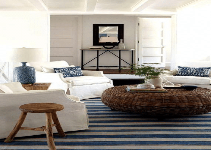 In addition, natural fiber rugs are great choices for a lake house because they can withstand the wear and tear that comes without activities and sandy feet. Their neutral tones also create a harmonious connection with the surrounding nature, enhancing the overall tranquility of the space.