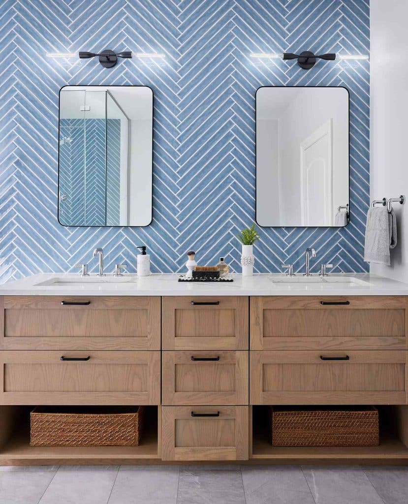 Because this is everything a coastal bathroom desires, it’s no surprise that the herringbone pattern is regarded as one of the best coastal bathroom ideas.