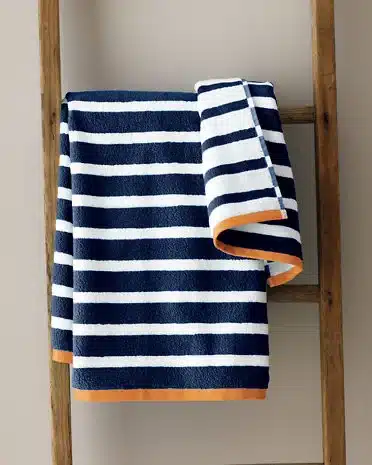 The Blue Stripe can be found in a variety of places around the world, from hotel bath towels to home decor. And with good reason! The Nautical Blue Stripe can make bathing bring back memories of a pleasant day spent lounging by the sea. When we travel or want to unwind, the Blue Striped Towel fits right in.