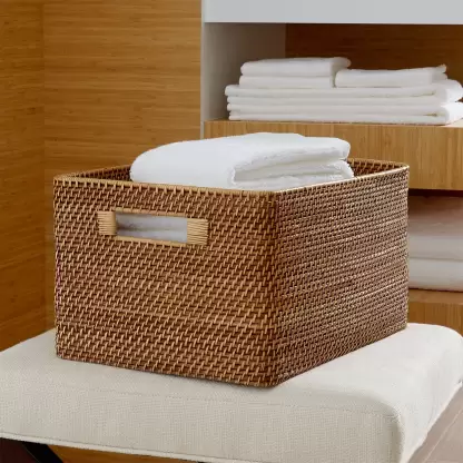 - Wicker baskets are one alternative for storage. This is a terrific method to keep things organized while also looking elegant. Baskets can be used to store towels, toiletries, or anything else that has to be kept tidy.